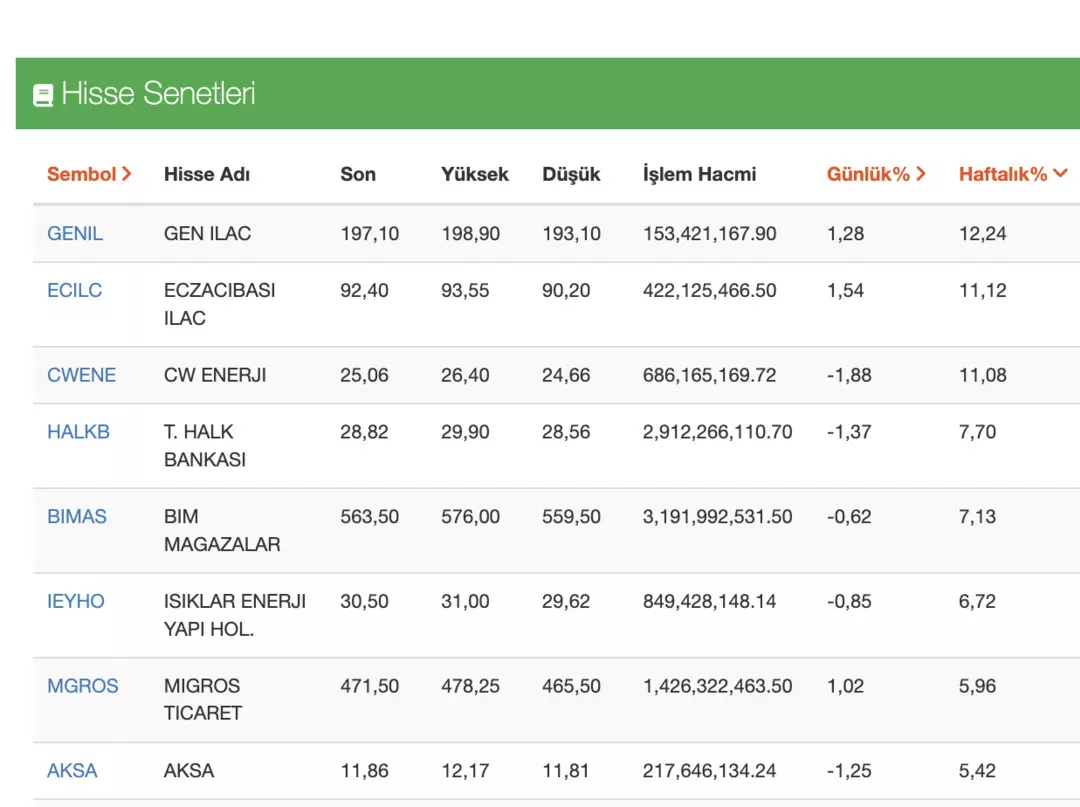 Haftanın en çok kazandıran hissesi GEN İlaç (GENIL) oldu. Yatırımcısına %12’nin üzerinde getiri sağlayan hisse, haftayı 197 TL seviyesinde tamamladı.