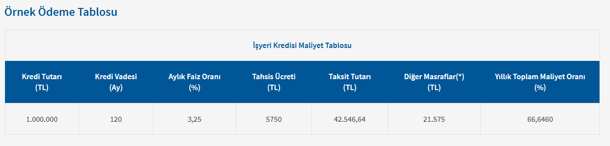 Kredi Tutarı (TL) | Vade (Ay) | Aylık Faiz (%) | Aylık Taksit (TL) | Yıllık Maliyet Oranı (%) |