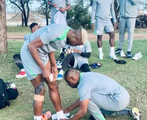 Victor Osimhen, Galatasaray formasıyla sergilediği performansla Süper Lig’de dikkatleri üzerine çekmişti. Ancak milli takım kampında paylaşılan bir kare, taraftarların yüreğini ağzına getirdi. Fotoğrafta Osimhen’in sol ayak bileğine bandaj uygulandığı görülüyor. Ayrıca arka planda, antrenman sahasının toprak zemine sahip olması ve tesisin sınırlı donanımı dikkat çekiyor.