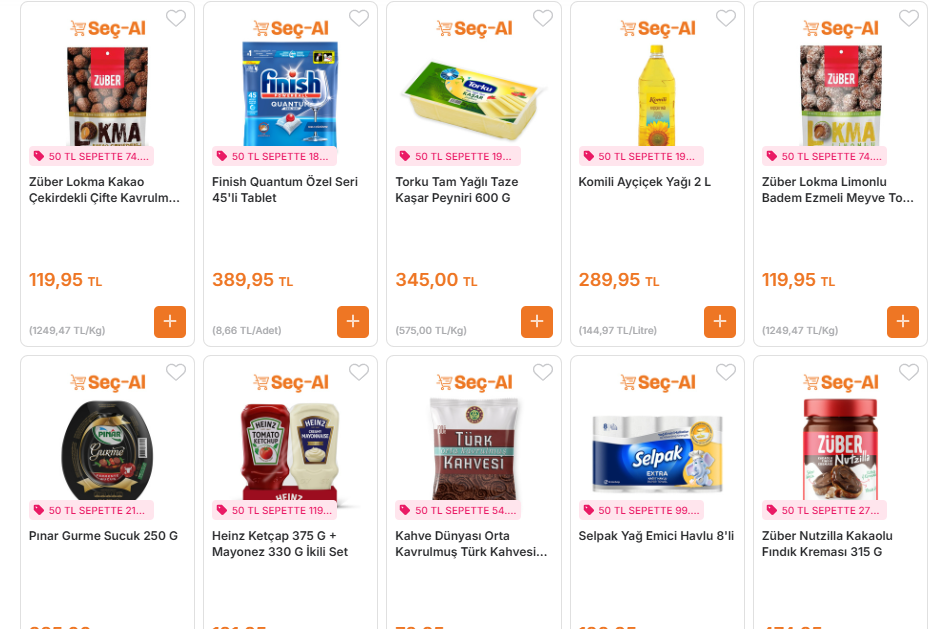 Torku markasının Tam Yağlı Taze Kaşar Peyniri 600 G ürününde de önemli bir indirim söz konusu; 345 TL olan fiyat, 50 TL üzeri alışverişlerde 199,90 TL’ye düşüyor. Komili Ayçiçek Yağı 2 litre paketi de 289,95 TL’den 199,95 TL’ye gerileyerek bütçe dostu seçenekler arasında öne çıkıyor.