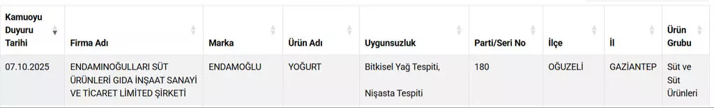 Endamoğlu Yoğurt: Yoğurtta bitkisel yağ ve nişasta bulundu. Bu katkılar, özellikle saf süt yoğurdu tüketmeye özen gösteren kullanıcılar için yanıltıcı.